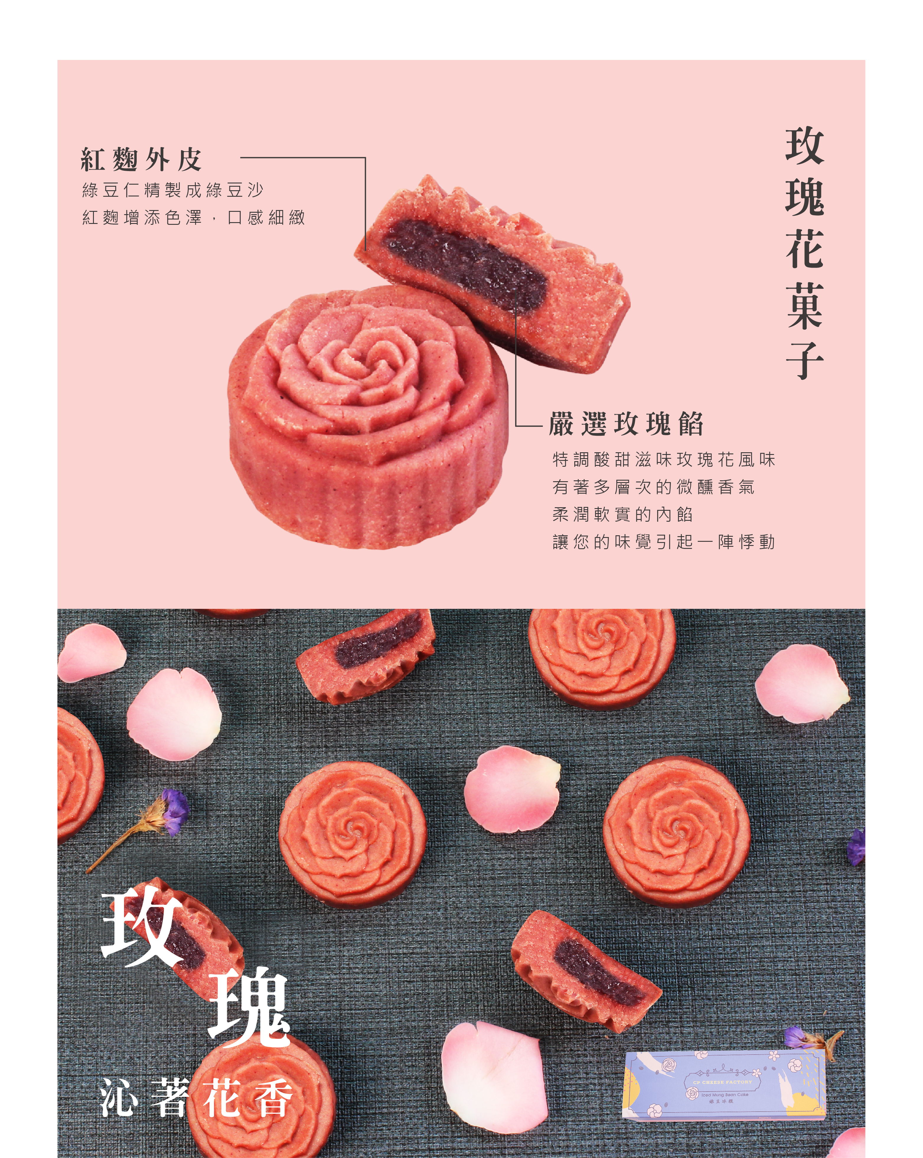 經典玫瑰外觀搭配玫瑰荔枝內餡,絕對是送禮首選。