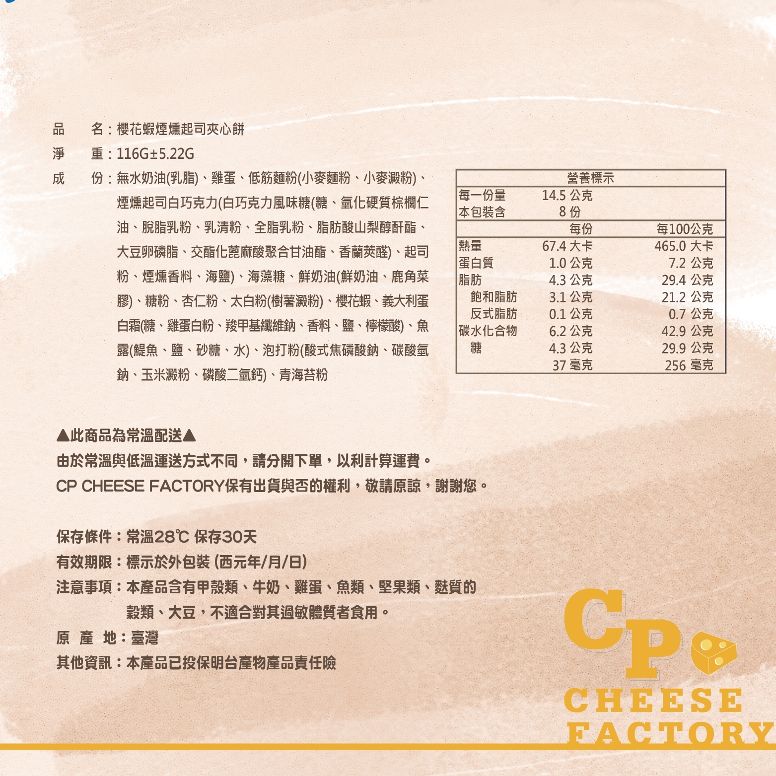 櫻花蝦煙燻起司夾心餅乾-一盒8入【2026烘焙展伴手禮/優選獎】